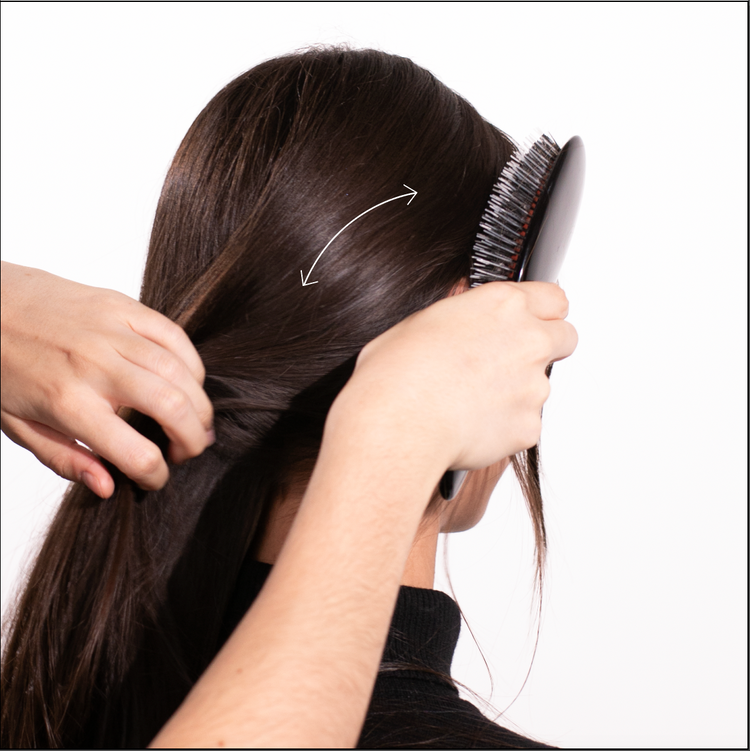 Gently pull the hair outward and away from the scalp, running your fingers through the hair.